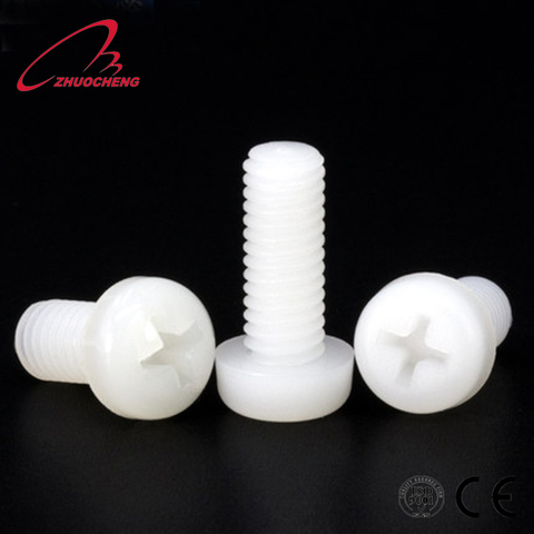 M3 M4 M10 Nylon Matière Plastique PA66 Blanc Noir Partiel Filetage Complet Croix Encastré Vis À Tête Pan Et Écrou Rondelle À Ressort Plate
